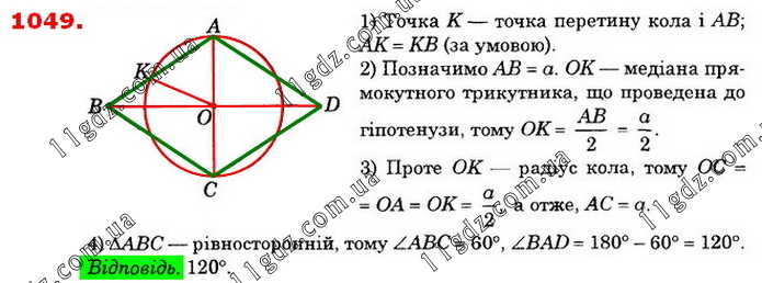Коло з діаметром АС проходить через середину сторони АВ ромба АВСБ. Знайдіть тупий кут ромба