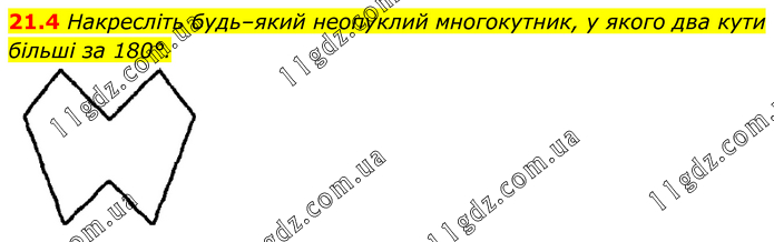 Накресліть будь–який неопуклий многокутник, у якого два кути більші за 180°.