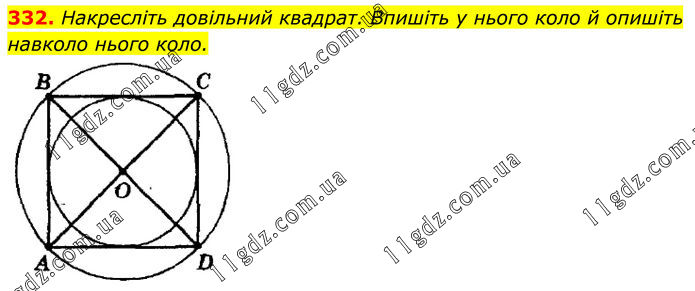 Накресліть довільний квадрат. Впишіть у нього коло й опишіть навколо нього коло.