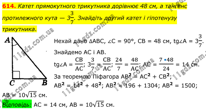 § 3. Розв'язування прямокутних трикутників » 614