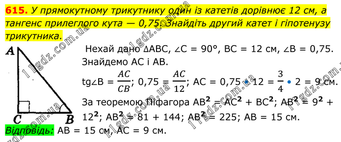 § 3. Розв'язування прямокутних трикутників » 615