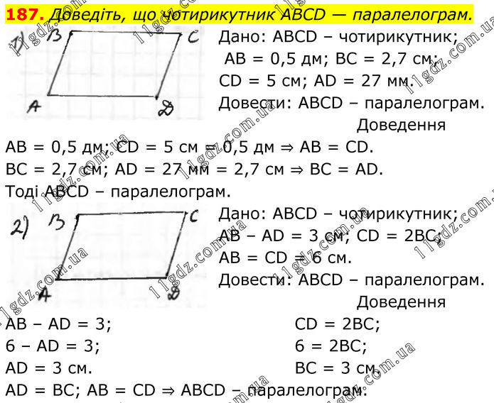 РОЗДІЛ 2. Чотирикутники. Вправи 72 - 200 » 187