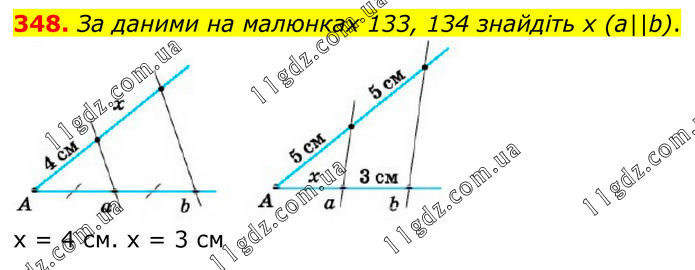 За даними на малюнках 133, 134 знайдіть х (а||b). х = 4 см. х = 3 см