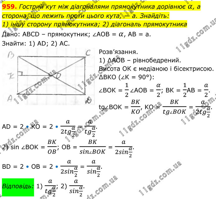 РОЗДІЛ 4. Розв’язування прямокутних трикутників » 959