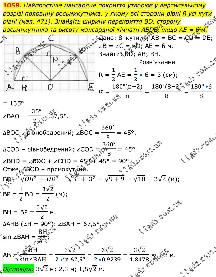 РОЗДІЛ 4. Розв’язування прямокутних трикутників » 1058