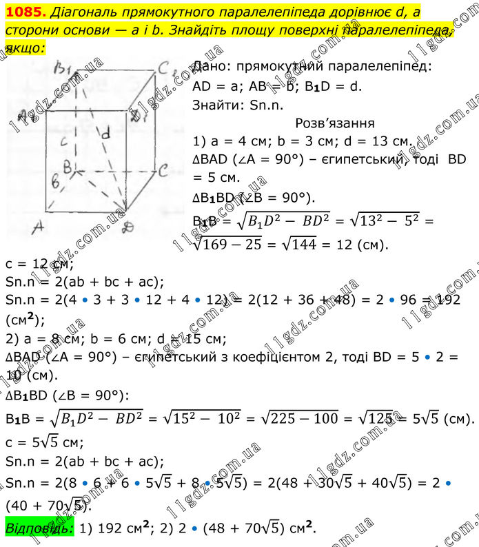 РОЗДІЛ 4. Розв’язування прямокутних трикутників » 1085