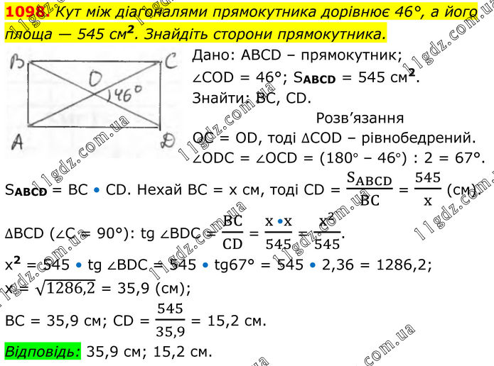 РОЗДІЛ 4. Розв’язування прямокутних трикутників » 1098