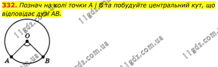 332. Познач на колі точки A і B та побудуйте центральний кут, що відповідає дузі AB.