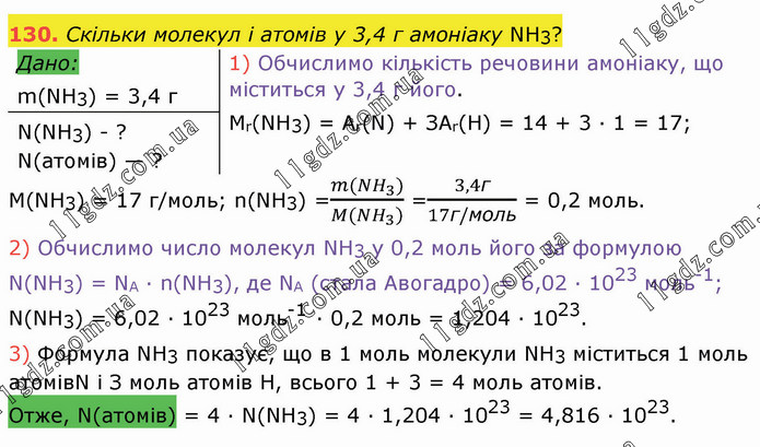 Кількість речовини. Розрахунки » 130