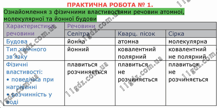 ПРАКТИЧНА РОБОТА № 1. Ознайомлення з фізичними властивостями речовин атомної, молекулярної та йонної будови