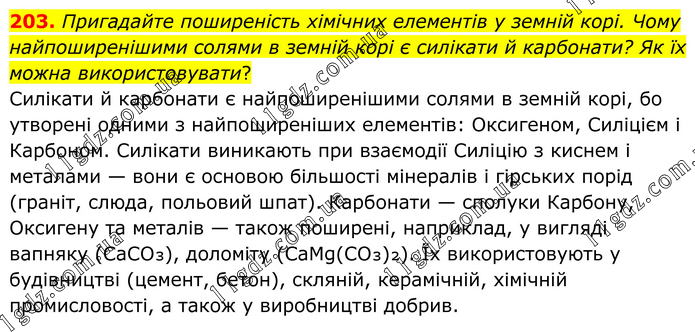Пригадайте поширеність хімічних елементів у земній корі. Чому найпоширенішими солями в земній корі є силікати й карбонати? Як їх можна використовувати? Силікати й карбонати є найпоширенішими солями в земній корі, бо утворені одними з найпоширеніших елементів: Оксигеном, Силіцієм і Карбоном. Силікати виникають при взаємодії Силіцію з киснем і металами — вони є основою більшості мінералів і гірських порід (граніт, слюда, польовий шпат). Карбонати — сполуки Карбону, Оксигену та металів — також поширені, наприклад, у вигляді вапняку (CaCO₃), доломіту (CaMg(CO₃)₂). Їх використовують у будівництві (цемент, бетон), скляній, керамічній, хімічній промисловості, а також у виробництві добрив.