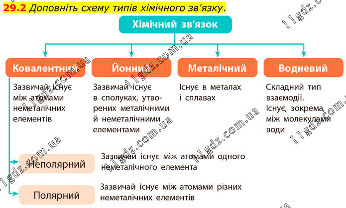 29.2 Доповніть схему типів хімічного зв'язку.