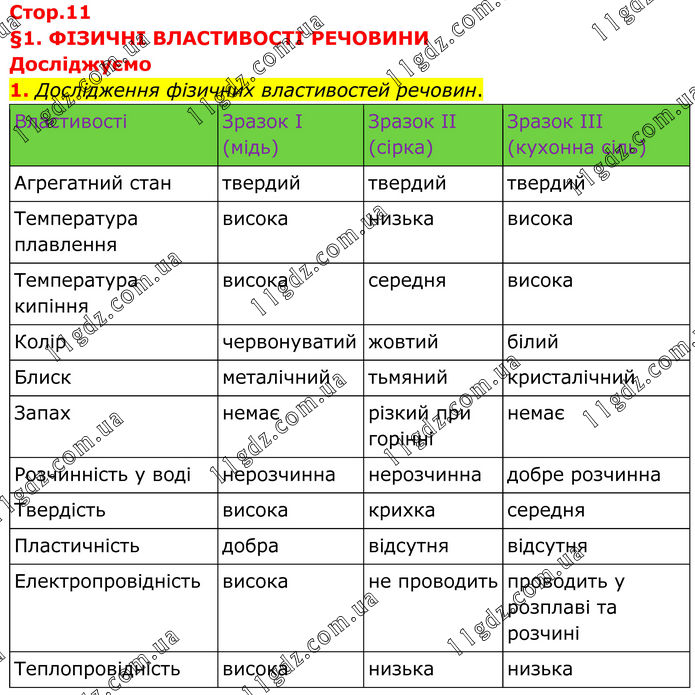 §1. ФІЗИЧНІ ВЛАСТИВОСТІ РЕЧОВИНИ Досліджуємо 1. Дослідження фізичних властивостей речовин.