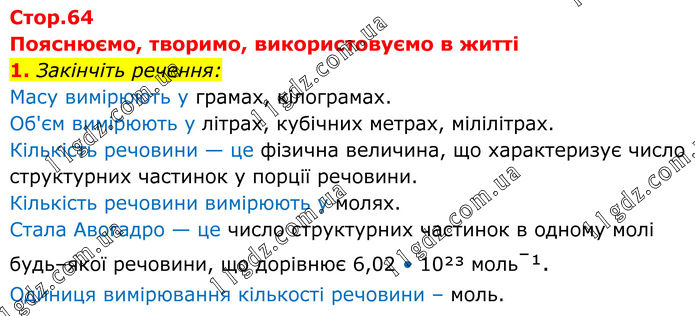 ТЕМА 1. ПІЗНАЄМО КІЛЬКІСНІ ЗАКОНИ ХІМІЇ » Стр.64 (1)
