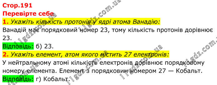 ТЕМА 3. ДОСЛІДЖУЄМО БУДОВУ АТОМА » Стр.191-(1-2)