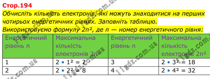 ТЕМА 3. ДОСЛІДЖУЄМО БУДОВУ АТОМА » Стр.194