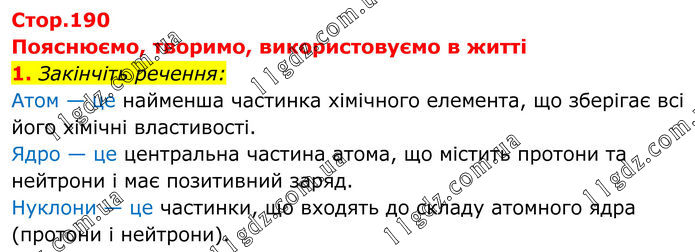 ТЕМА 3. ДОСЛІДЖУЄМО БУДОВУ АТОМА » Стр.190 (1)