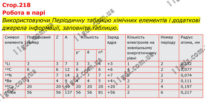 ТЕМА 3. ДОСЛІДЖУЄМО БУДОВУ АТОМА » Стр.218 (1)
