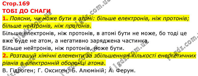 Тема 3. ДОСЛІДЖУЄМО БУДОВУ АТОМА » Стр.169 (1-2)