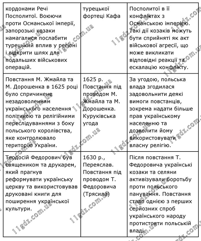 Повстання М. Жмайла та М. Дорошенка в 1625 році було спричинене незадоволенням українського населення політикою та релігійними переслідуваннями з боку польського королівства, яке контролювало територію України. 1625 р. Повстання під проводом М. Жмайла та М. Дорошенка. Куруківська угода За угодою, польська влада згодилася задовольнити деякі вимоги повстанців, зокрема надати більше прав українському населенню та дозволити йому використовувати власну релігію. Теодосій Федорович був священиком та друкарем, який прагнув реформувати українську церкву та використовував друковані книги для поширення української культури. 1630 р., Переяслав. Повстання під проводом Т. Федоровича (Трясила) Після повстання Т. Федоровича українські козаки та селяни активізували боротьбу проти польського панування. Повстання стало однією з перших серйозних спроб українського народу протистояти польській владі.
