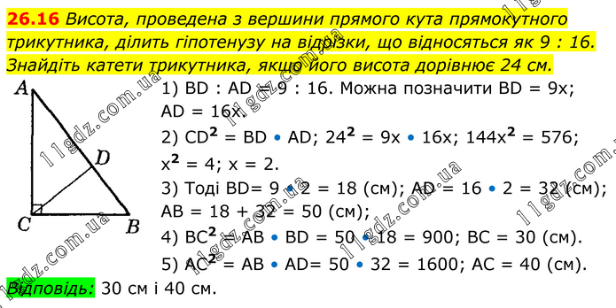 Тема 6. ПОДІБНІСТЬ ТРИКУТНИКІВ » 26.16
