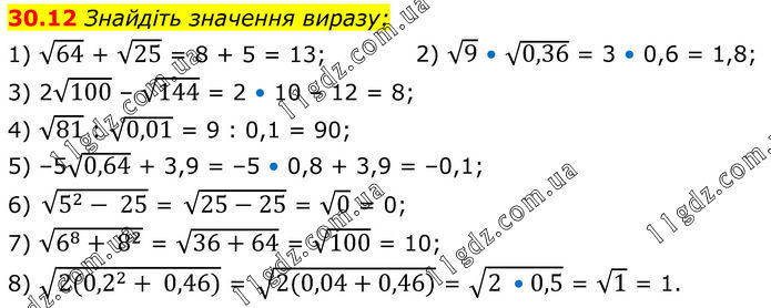 ЧАСТИНА 2. Тема 7. КВАДРАТНІ КОРЕНІ. ДІЙСНІ ЧИСЛА » 30.12