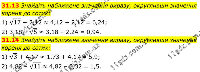 ЧАСТИНА 2. Тема 7. КВАДРАТНІ КОРЕНІ. ДІЙСНІ ЧИСЛА » 31.13-31.14