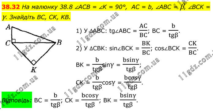 Тема 8. РОЗВ’ЯЗУВАННЯ ПРЯМОКУТНИХ ТРИКУТНИКІВ » 38.32