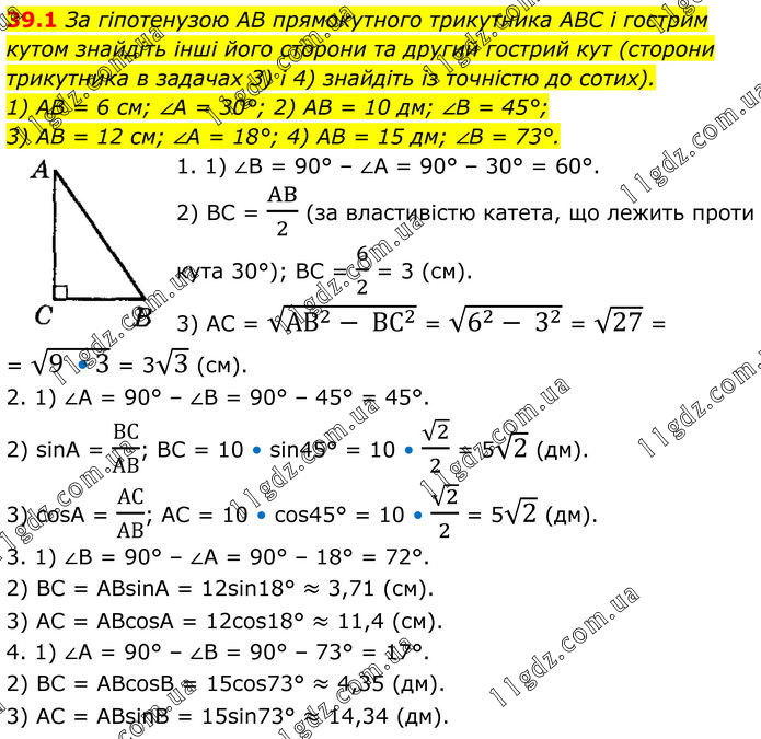 Тема 8. РОЗВ’ЯЗУВАННЯ ПРЯМОКУТНИХ ТРИКУТНИКІВ » 39.1