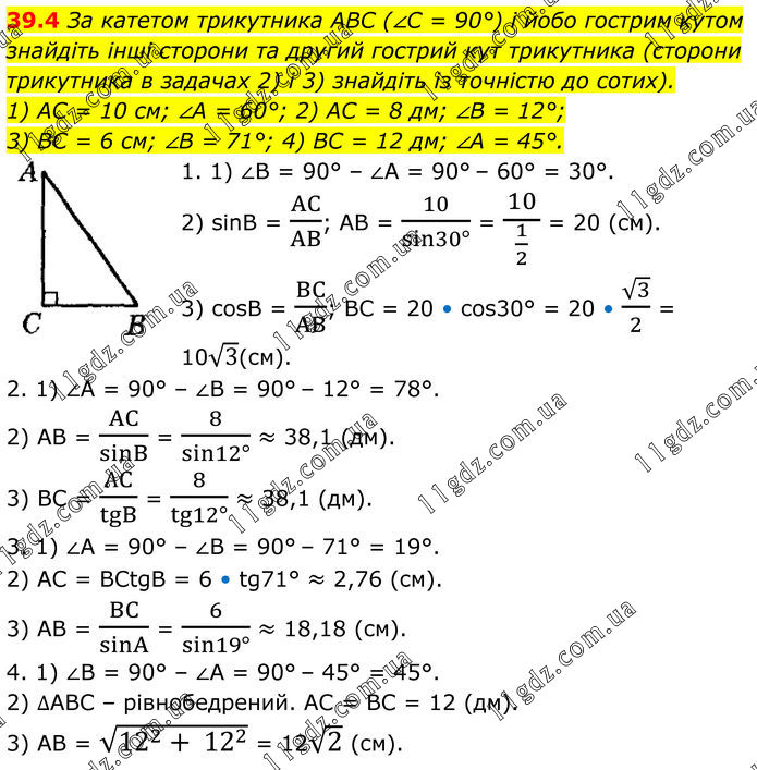 Тема 8. РОЗВ’ЯЗУВАННЯ ПРЯМОКУТНИХ ТРИКУТНИКІВ » 39.4