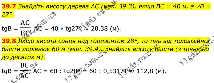 Тема 8. РОЗВ’ЯЗУВАННЯ ПРЯМОКУТНИХ ТРИКУТНИКІВ » 39.7-39.8
