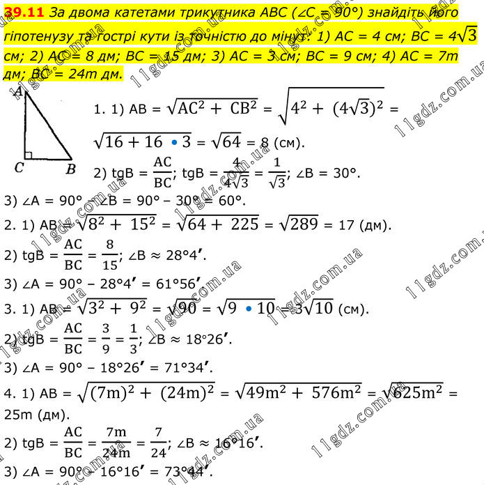 Тема 8. РОЗВ’ЯЗУВАННЯ ПРЯМОКУТНИХ ТРИКУТНИКІВ » 39.11