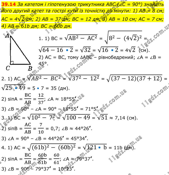 Тема 8. РОЗВ’ЯЗУВАННЯ ПРЯМОКУТНИХ ТРИКУТНИКІВ » 39.14