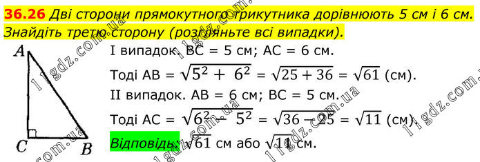 Тема 8. РОЗВ’ЯЗУВАННЯ ПРЯМОКУТНИХ ТРИКУТНИКІВ » 36.26