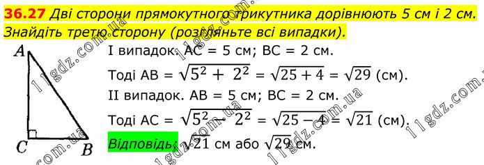 Тема 8. РОЗВ’ЯЗУВАННЯ ПРЯМОКУТНИХ ТРИКУТНИКІВ » 36.27