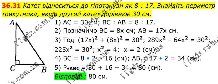 Тема 8. РОЗВ’ЯЗУВАННЯ ПРЯМОКУТНИХ ТРИКУТНИКІВ » 36.31