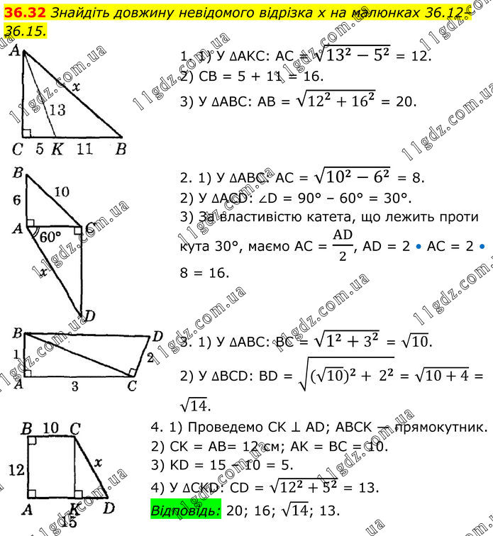 Тема 8. РОЗВ’ЯЗУВАННЯ ПРЯМОКУТНИХ ТРИКУТНИКІВ » 36.32