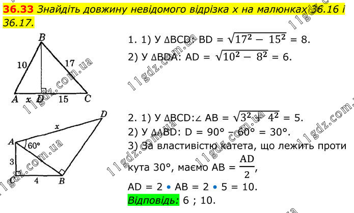 Тема 8. РОЗВ’ЯЗУВАННЯ ПРЯМОКУТНИХ ТРИКУТНИКІВ » 36.33