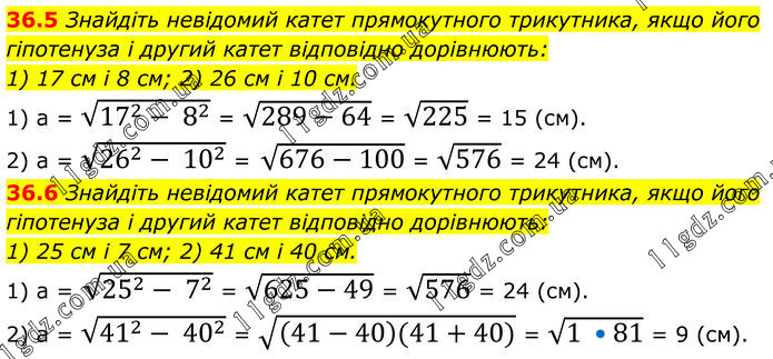 Тема 8. РОЗВ’ЯЗУВАННЯ ПРЯМОКУТНИХ ТРИКУТНИКІВ » 36.5-36.6