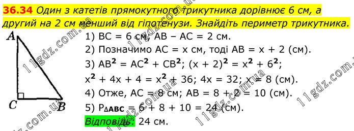 Тема 8. РОЗВ’ЯЗУВАННЯ ПРЯМОКУТНИХ ТРИКУТНИКІВ » 36.34