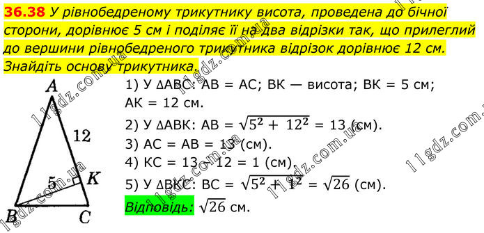 Тема 8. РОЗВ’ЯЗУВАННЯ ПРЯМОКУТНИХ ТРИКУТНИКІВ » 36.38
