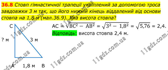 Тема 8. РОЗВ’ЯЗУВАННЯ ПРЯМОКУТНИХ ТРИКУТНИКІВ » 36.8