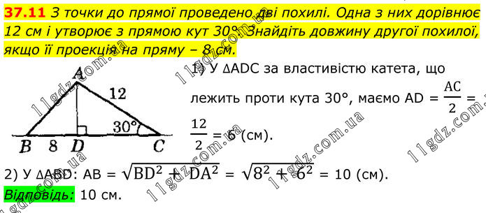 Тема 8. РОЗВ’ЯЗУВАННЯ ПРЯМОКУТНИХ ТРИКУТНИКІВ » 37.11
