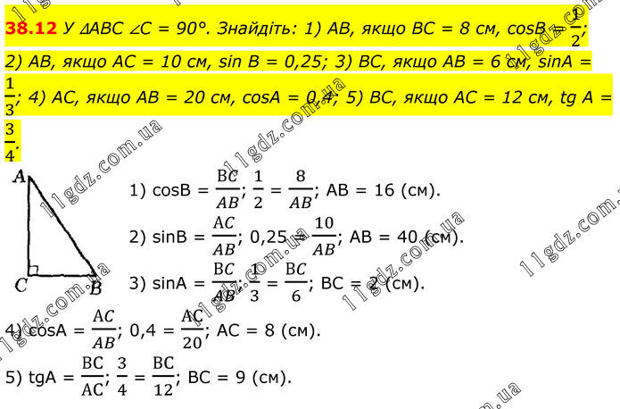 Тема 8. РОЗВ’ЯЗУВАННЯ ПРЯМОКУТНИХ ТРИКУТНИКІВ » 38.12
