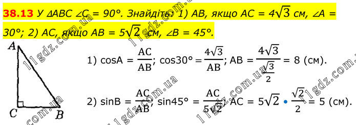 Тема 8. РОЗВ’ЯЗУВАННЯ ПРЯМОКУТНИХ ТРИКУТНИКІВ » 38.13