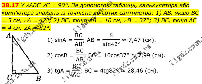 Тема 8. РОЗВ’ЯЗУВАННЯ ПРЯМОКУТНИХ ТРИКУТНИКІВ » 38.17