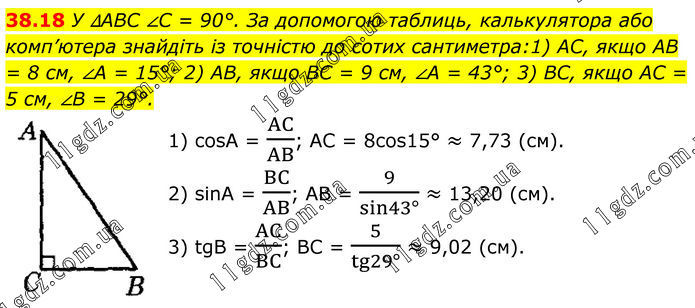 Тема 8. РОЗВ’ЯЗУВАННЯ ПРЯМОКУТНИХ ТРИКУТНИКІВ » 38.18