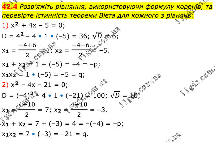 Тема 9. КВАДРАТНІ РІВНЯННЯ » 42.4 (1-2)