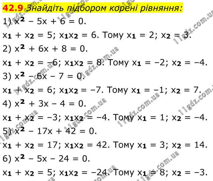Тема 9. КВАДРАТНІ РІВНЯННЯ » 42.9