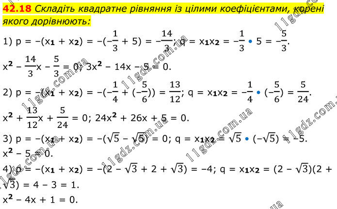 Тема 9. КВАДРАТНІ РІВНЯННЯ » 42.18